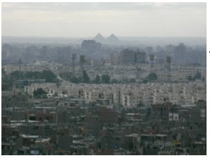 خیابانها اسفالت بودند اما با هزاران سوراخی که از باران و یا در اثر خرابی بوجود آمده بود. در پیاده روها اسفالتی دیده میشد که زمانی برای تعمیر لوله آب یا فاضل آب کنده شده ودیگر ساخته نشده است. کثیفی خیابانها توی چشم میزد. اشغال، پلاستیک و خاک در هم آمیخته بود. کاش خاک تنها روی زمین بود. هرجا که فکر کنی خاک نشسته بود. روی ماشینهای ایستاده کنار خیابان حتی روی ماشینهای در حال حرکت، روی صندلیهای پارک، روی چمن، روی نرده کنار خیابان، روی لبه پلی که روی رودخانه نیل زده شده بود، روی میوهها و اجناسی که برای فروش عرضه میشد،