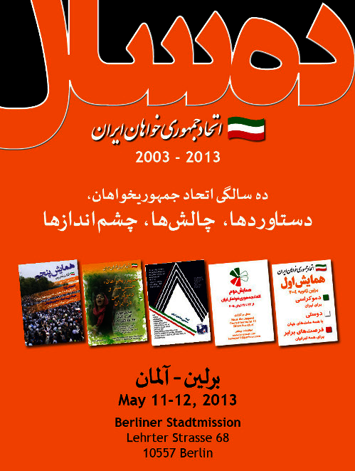 ده سال اتحاد جمهوری خواهان ایران April 23, 2013 در این زمینه: بحران خشکسالی و آب در ایران گزارش کامل مراسم دهمین سالگرد تاسیس اتحاد جمهوری خواهان ایران میزگرد همگرایی جمهوری خواهان
