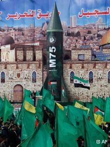 خالد مشعل روز شنبه از درون دکوراسیونی به شکل موشک پا به روی سکوی سخنرانی در مقابل هواداران خود را گذاشت. حماس مدعی شد که نیم میلیون نفر برای شنیدن سخنان وی در محل گرد آمده بودند.