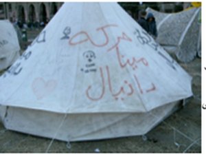 نمیدانستیم که این چادرها متعلق به اخوان المسلمین است یا اپوزیسیون. نشانه ای از درگیری و زدوخورد دیده نمیشد. کنار هر چادرعدهای مشغول بحث و گفتگوبودند. در گوشهای از میدان عدهای جوان دیدیم که چادری را سوارمی کردند. کف زمین روی چمن و خاک پتوهایی بود که نشان میداد شب قبل این جوانان روی همین پتوها خوابیدهاند. چند دختر بدون روسری مشغول وررفتن با لپ تاپهایشان بودند. مانند جوانی خودم لباس بر تن داشتند. جلو رفتیم و سوال کردیم که آیا انگلیسی بلد هستند. آنها یکی از پسرها را صدا زدند. بیست و دو یا سه ساله بود با ته ریش و عینکی روشنفکری. گفت که دانشجوی مهندسی است و سایرین هم همه دانشجو و عضو گروه «مینا دانیال»؛ مبارزی که در درگیریهای جلوی کاخ ریاست جمهور کشته شده است. تعریف کرد که دو سال است بطور دائم چادرشان در این محل برقرار است و به تناوب اینجا میخوابند. گفت که در میدان تحریر همه چادرها متعلق به نیروهای اپوزیسیون است. اخوانیها در این میدان حضور ندارند. چند درگیری اخیر با اخوانیها در برابر کاخ ریاست جمهور و زمانی بوده که آنها برای تظاهرات به آنجا رفته بودند. اخوانیها هم نیروهایشان را بسیج کرده و به آنها حمله کردهاند. چادرهای الدستوریها در همان سوی میدان و چادرهای طرفداران مبارک در سمت دیگر بود. میگفت آنها هم اینجا هستند اما ما کاری به آنها نداریم. سوال کرد از کدام کشور هستیم و وقتی گفتیم که ایرانی هستیم سری تکان داد و گفت «نمیگذاریم مصر ایرانی دیگر شود.”