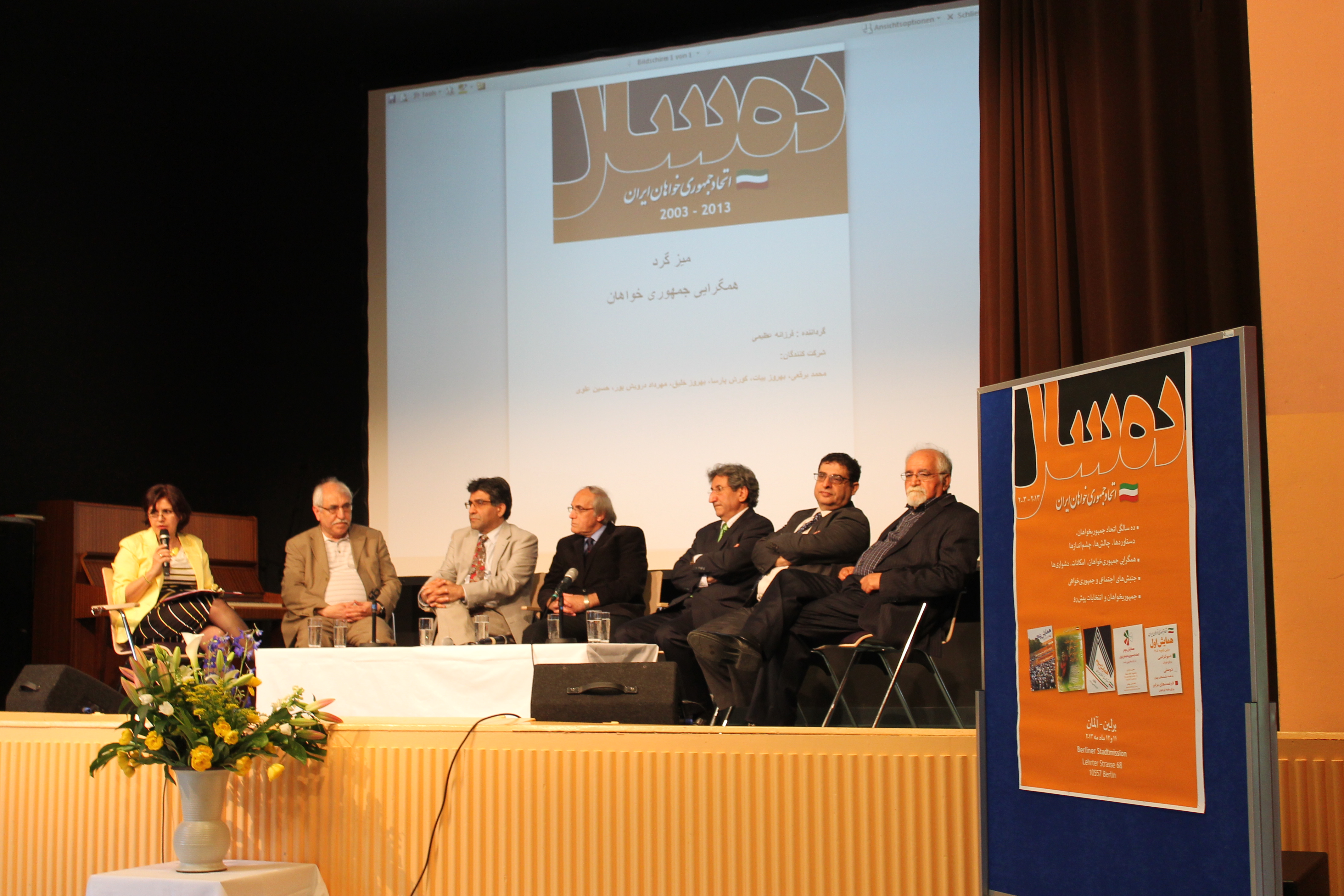محمد برقعی، بهروز بیات، کوروش پارسا، بهروز خلیق، مهرداد درویش پور و حسین علوی شرکت کنندگان اولین میز گرد این همایش بودند که فرزانه عظیمی آن را اداره میکرد.