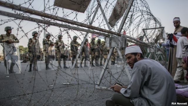 ارتش مصر در حالی تجمعکنندگان مقابل این مسجد را «تروریست» خوانده است که جهاد الحداد، سخنگوی اخوانالمسلمین مصر در پیامی توئیتری تاکید کرده است که افراد حاضر در این محل، دست به تحصن زده بودند و نیروهای پلیس با اقداماتی «کشنده» سعی در متفرق کردن آنها کردهاند.