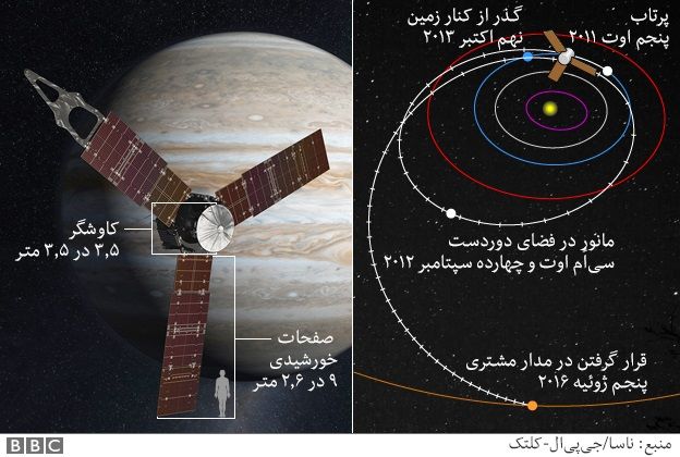 سفینه بدون سرنشین جونو در ماه اوت سال ۲۰۱۱ از پایگاه فضایی کیپ کاناورال، ایالت فلوریدا، به فضا پرتاب شد و روز دوشنبه به نزدیکی مشتری رسید اما میبایست از میان تشعشعات شدید و توده انبوه اجرامی که در اطراف مشتری شناور است سالم بگذرد تا بتواند ماموریت خود رآغاز کند.