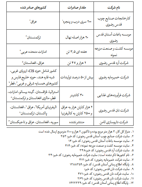 وضعیت صادراتی شرکتها و مؤسسات اقتصادی آستان قدس
