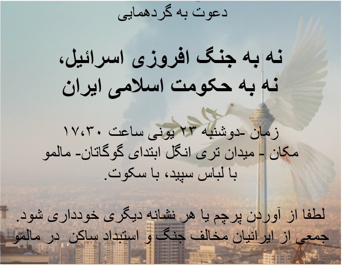 تجاوز اسرائیل به ایران و حملات هوایی به شهر های مختلف که منجر به کشته و زخمی شدن تعداد زیادی از ایرانیان که بخش زیادی از آنها افراد غیر نظامی هستند،.شد دراعتراض به این حمله گردهمای زیادی از ایرانیان در کشور های مختلف اروپا برگزار شد. در بسیاری از گرد همایی ها همزمان درشعار هایی مخالفت با سیاست های جمهوراسلامی هم مطرح شد. .