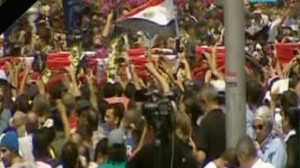 عزادارانی که در مصر در مراسم خاکسپاری شانزده نگهبان مرزی این کشور شرکت کرده بودند، با سر دادن شعارهایی، از محمد مرسی، رئیسجمهوری این کشور که در این مراسم حضور نداشت، انتقاد کردند.این ماموران مرزی روز دوشنبه توسط افراد مسلحی که پس از تیراندازی به آنها، از مرز عبور کرده و وارد خاک اسرائیل شدند، کشته شدند.هفت مهاجم مسلح پس از آن که وارد خاک اسرائیل شدند، توسط تانکها و هلیکوپترهای اسرائیل کشته شدند.قرار بود محمد مرسی در مراسم خاکسپاری مأموران مرزی مصری شرکت کند، اما به جای آن در قاهره، به بیمارستانی رفت که مجروحان این حادثه در آن بستری هستند.