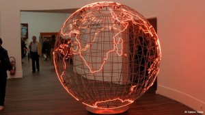 مونا هاتوم (Mona Hatoum)، هنرمند بریتانیایی لبنانیتبار در این نمایشگاه، اثری با عنوان “گلولهی داغ” ارائه کرده که کرهی زمین را نشان میدهد. سطح این گلوله که با نوارهای پهن فولادی ساخته شده، جابهجا با چراغهای سرخ خطر پوشیده شده که یادآور مناطق بحرانی جهان است. هنرمند اوکرائینی، نیکیتا کادان (Nikita Kadan) برای نشاندادن شکنجه و سانسور در زادگاه خود، موتیفهای یک بشقاب چینی با چهرهی یک زن را به کمک گرفته که دستی در حال فشردن گلوی اوست.